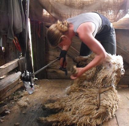The rest of the stops where sheep, one small flock of close to twenty including hoof trims, and drenching, a flock of 60, and an even smaller flock of one. The last stop was a bit more of a challenge... 100 head, over 80 of which where double fleeced. A double fleece is a fleece that is two years growth. The owner hadn't been able to find a shearer the previous year, and was quite happy when I gave him a call. Have you ever wondered what a sheep with two years of wool looks like? Well, quite frankly...Huge!